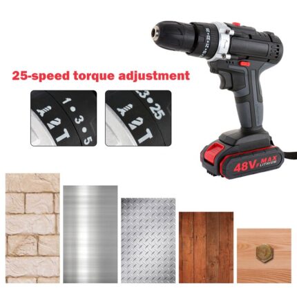 48VF Wireless Cordless Electric Drill Impact Drill Screwdriver Lithium Battery Cordless Drill Set with 11/20/32pcs Accessories