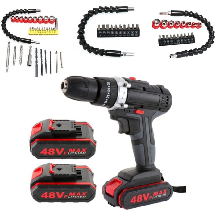 48VF Cordless Lithium Impact Drill Electric Screwdriver Impact Drill 1*/2 Battery + 1* Battery Charger